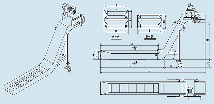 ?。?)電機(jī)功率根據(jù)有效排屑寬度B2、水平度L1、提升高度H確定