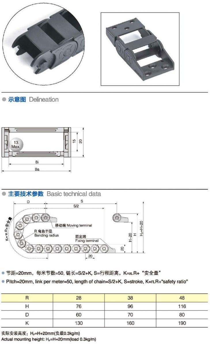 名稱:柔性 材質(zhì):PVC 系列號:JN15Q.1.B 長度:50pitch/m 內(nèi)高:15mm 內(nèi)寬:20-40mm 彎曲半徑:283848 應(yīng)用機械:全部